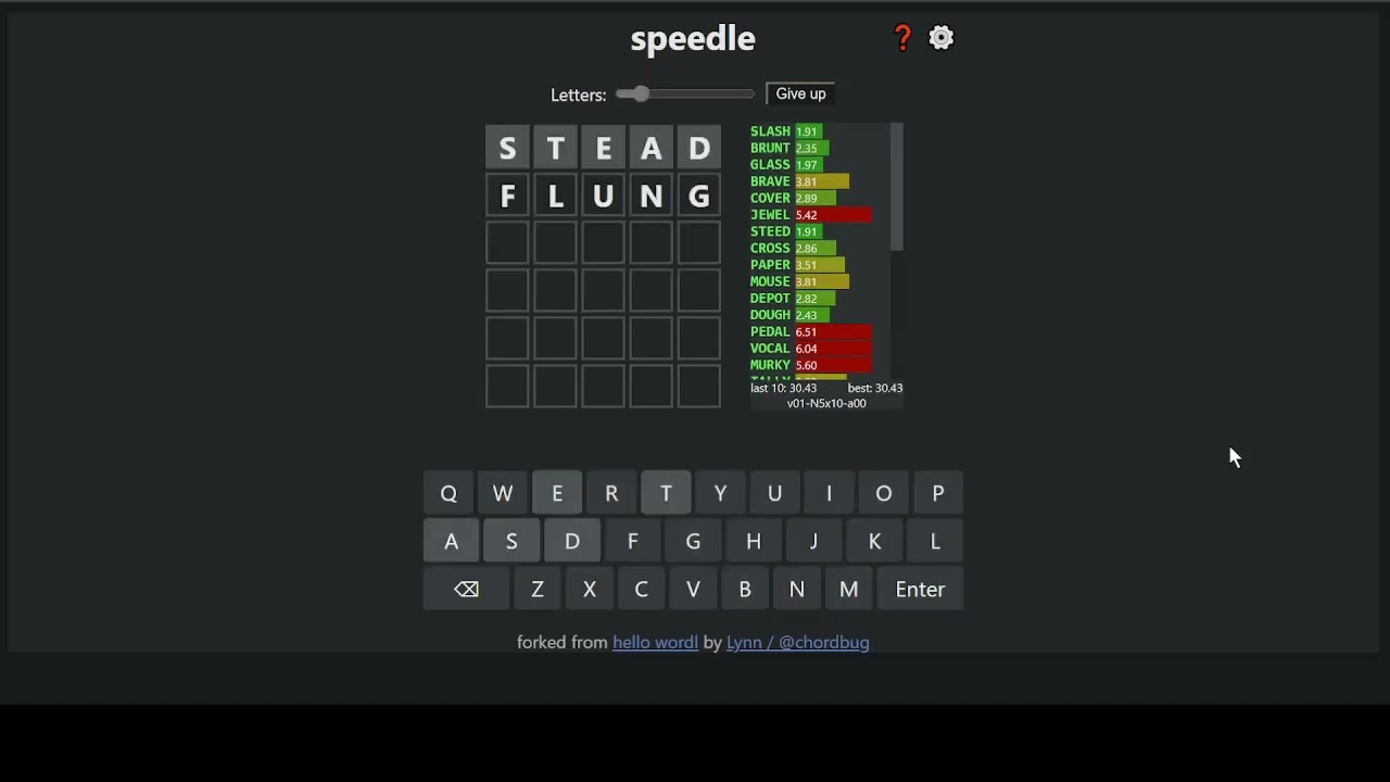 Web Speedle contrary to what the name might imply is not a speed run version of Wordle but it is ideal for individuals who like to complete standard Wordle puzzles at a pace that. Each guess must be a valid 5-letter word. Q w e r t y u i o p.